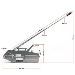 Le modèle classique du treuil se compose en général d’un châssis, d’une manivelle, d’un système de fixation et d’un tambour. Le treuil que nous vous proposons est de fonctionnement manuel, qui offre une capacité de charge allant jusqu’à 3200 kg. La force de traction se transmet via une corde de 20 mètres de longueur et de 16 mm de diamètre. La corde, enroulée autour d’un tambour est équipée à l’extrémité d’un crochet de charge avec dispositif de sécurité. Par ailleurs, le treuil à câble est doté d’une goupille de cisaillement, qui le protège des surcharges. Le bras de levier est muni d’une poignée caoutchoutée pour un usage de tout confort.