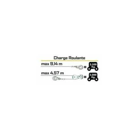 – Charge roulante (ou flottante): 5000 kilos avec poulie de mouflage