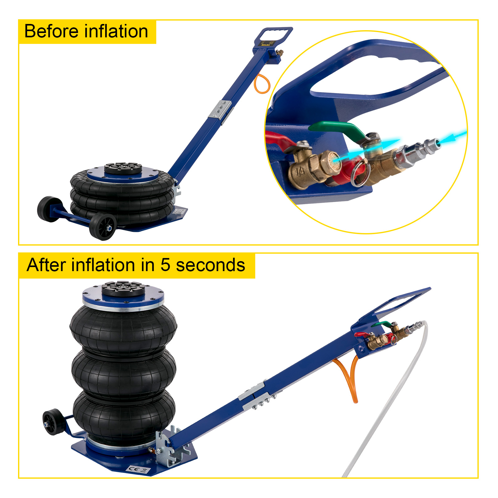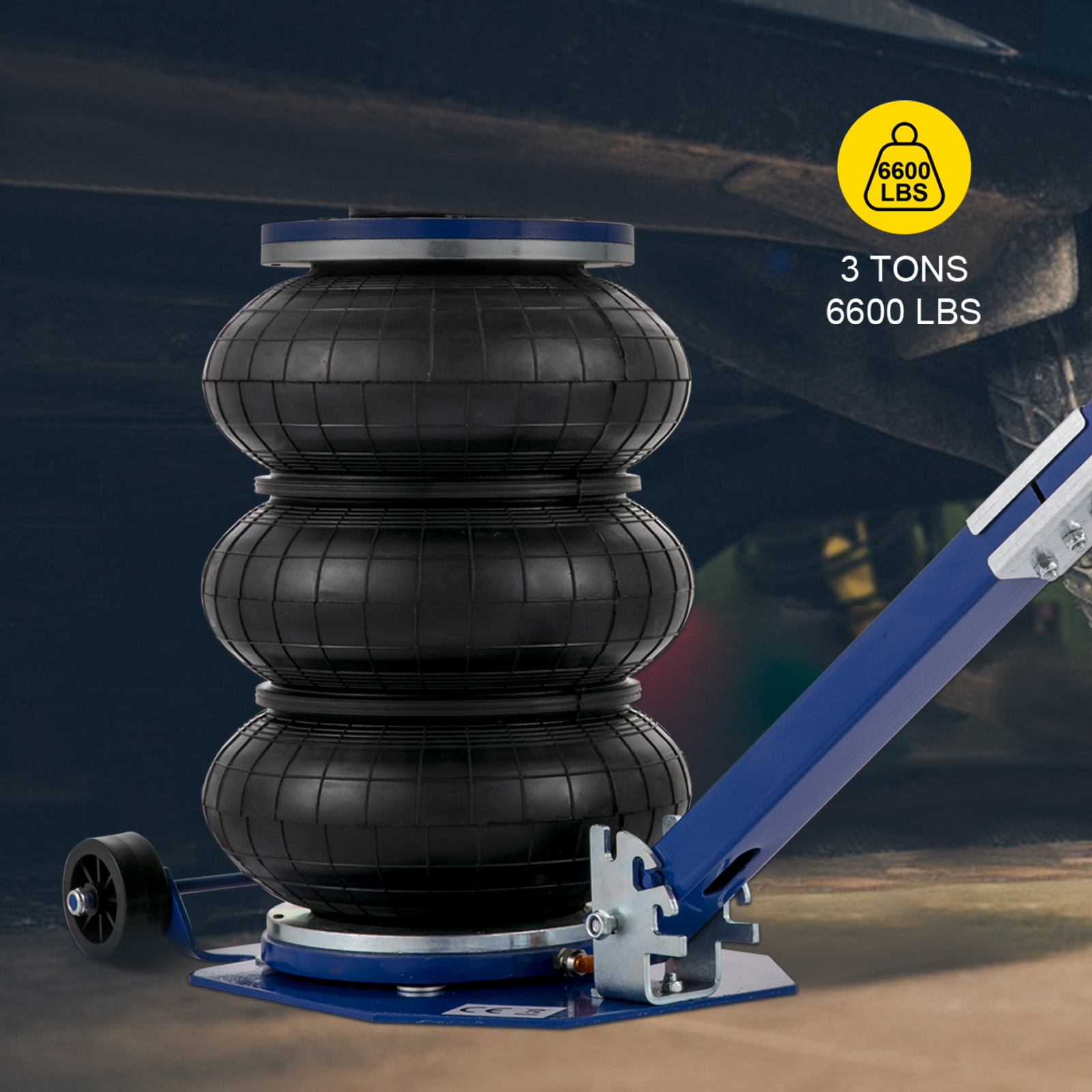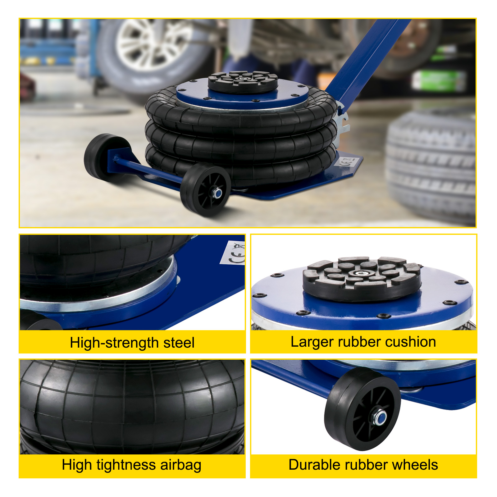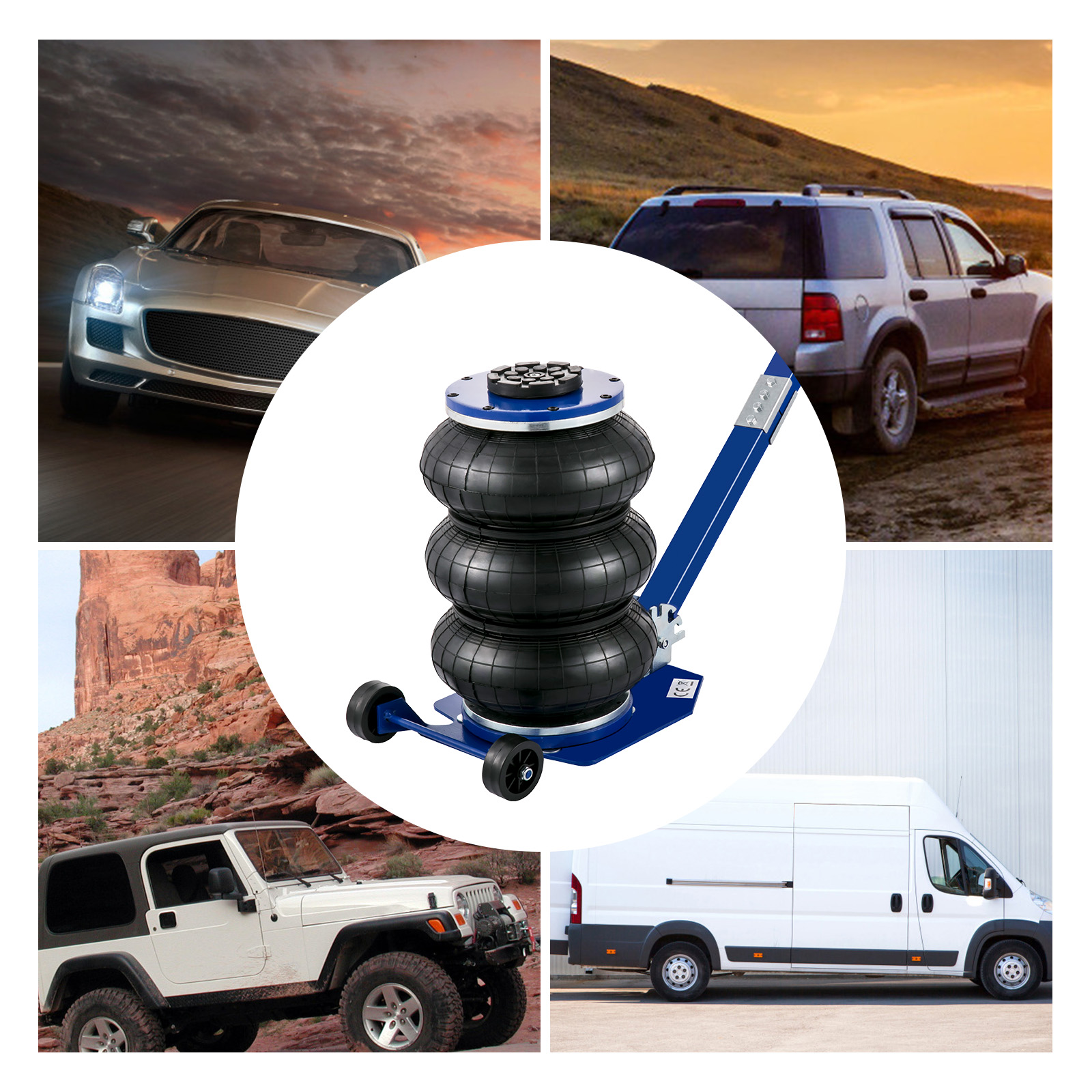 Ce cric gonflable a 3 coussins peut supporter 3 T. Il peut etre utilise pour soulever vos petites voitures, voitures familiales, camionnettes, SUV et vehicules tout-terrain, ou autres objets lourds.