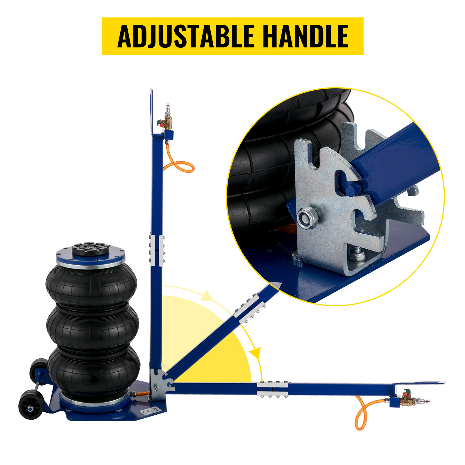 - Poignee Reglable : Ce cric gonflable dispose deune poignee reglable, qui peut etre ajustee a trois positions differentes pour rendre le cric pratique a utiliser. Et cette poignee peut etre demontee a partir du milieu, ce qui permet deeconomiser de lespace et vous permet de lemmener a lexterieur.
