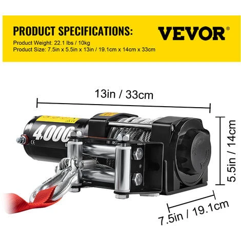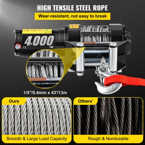 - Performance Exceptionnelle : Treuil électrique, capacité de charge : 1814 kg ; puissance : 1,3 kW ; rapport d’engrenage : 135:1. Le puissant moteur est relié à un système d’engrenage planétaire à 3 étages pour une plus grande puissance de traction et une vitesse plus rapide. Convient aux voitures, bateaux, camions, jeeps, véhicules modifiés et remorques utilitaires polyvalentes.