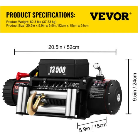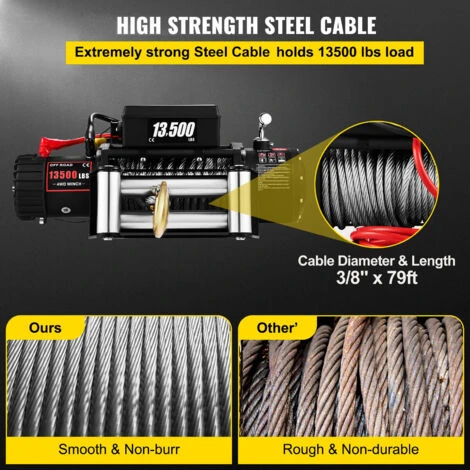 - Performance Exceptionnelle : Treuil Ă©lectrique, capacitĂ© de charge : 6123,5 kg ; puissance : 4,85 kW ; rapport d’engrenage : 265:1. Le puissant moteur est reliĂ© Ă un système d’engrenage planĂ©taire Ă 3 Ă©tages pour une plus grande puissance de traction et une vitesse plus rapide. Convient aux voitures, bateaux, camions, jeeps, vĂ©hicules modifiĂ©s et remorques utilitaires polyvalentes.