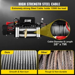 - Câble en Acier AvancĂ© : Longueur du câble : 24 m ; diamètre du câble : 9,5 mm. Ce treuil pour camions est Ă©quipĂ© d’un câble en acier plus rĂ©sistant. Il vous permet de vous dĂ©barrasser rapidement des voitures qui s’enlisent dans la boue, tombent en panne ou s’Ă©chouent sur la plage.